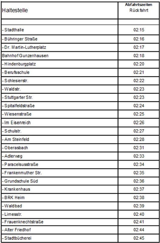 hier sehen Sie den Fahrplan für den kostenlosen Bus-Shuttle zu der Veranstaltung "AltmühlBeats goes Mallorca - Mallorca Party" am 25.10.2025.